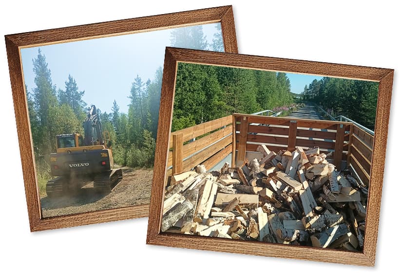 Teemme ammattitaidolla ja vuosien kokemuksella kone- ja metsätöitä. Meiltä onnistuu niin pihatyöt aina puiden kaadosta ruohonleikkuuseen ja pihalaattojen asennukseen kuin ojankaivuu sekä lavettikuljetukset. Meiltä saat myös maa-ainekset sekä kuivat polttopuut kotiin tuotuna myös mittatilauksena.
